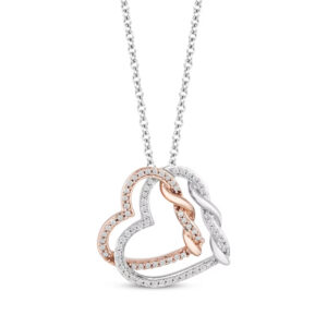 The word “mom” alternates with infinity symbols decked in diamonds in this pretty bracelet for her, styled in sterling silver. Hearts of 10K rose gold complete the look. Totaling 1/10 carat in diamond weight, the 7.5-inch bracelet secures with a lobster clasp.